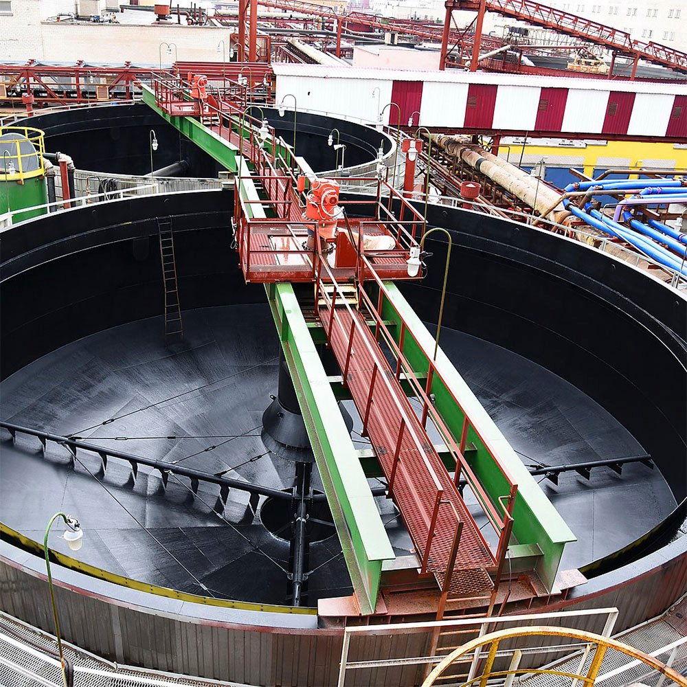 Описание продукта: Сгустителями называют цилиндрические бассейны, характеризующиеся большим диаметром. Сгуститель обезвоживает пульпу, поступающую в него, и разделяет ее на жидкости и твердое вещество. В процессе обеспечивается рециркуляция воды.